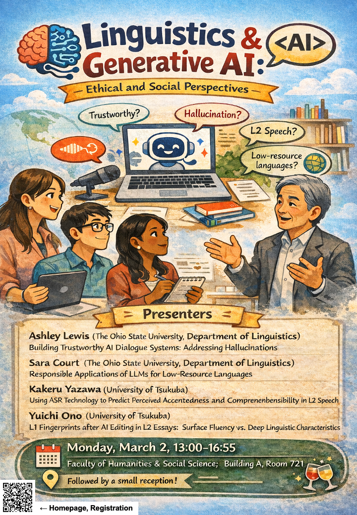 In March, professors and students from The Ohio State University will visit the University of Tsukuba, and a workshop titled “Linguistics and Generative AI with Ethical and Social Perspectives” will be held!
